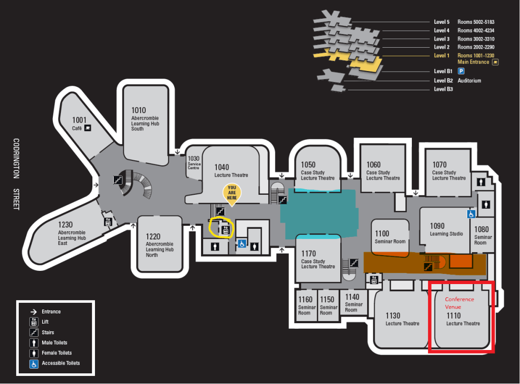 Lecture Theatre 1110, Abercrombie Building H70, Corner Abercrombie Street and, Codrington St, Darlington NSW 2006